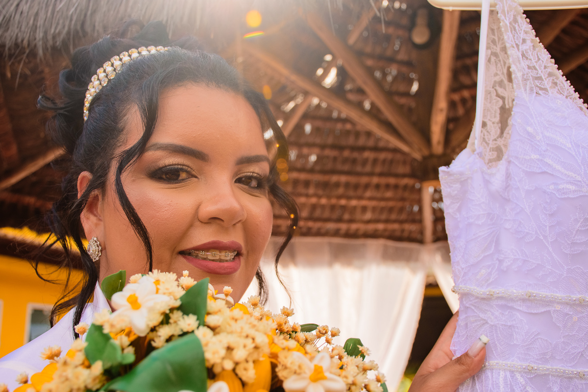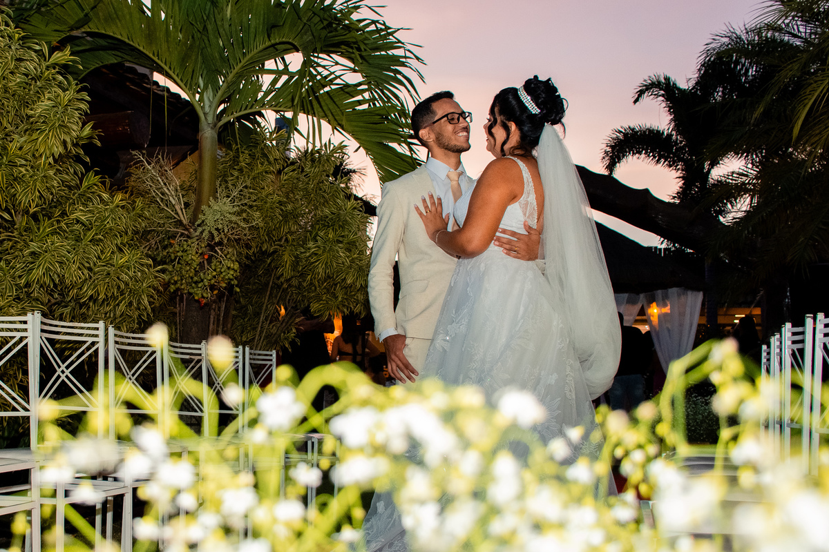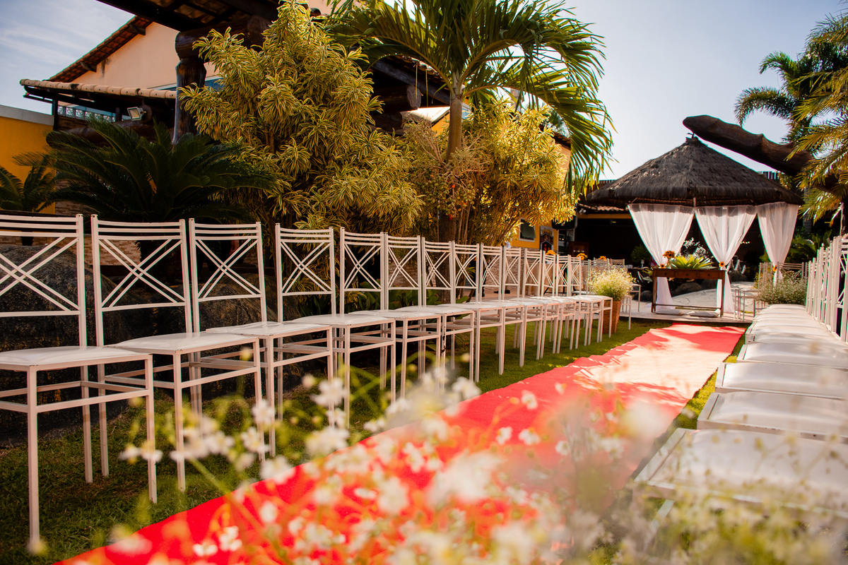 Para registrarem e celebrarem essa linda união, decidiram casar-se no estilo rústico, a cerimônia foi realizada na área externa do salão, localizado na região de Lagoinha - São Gonçalo - RJ.