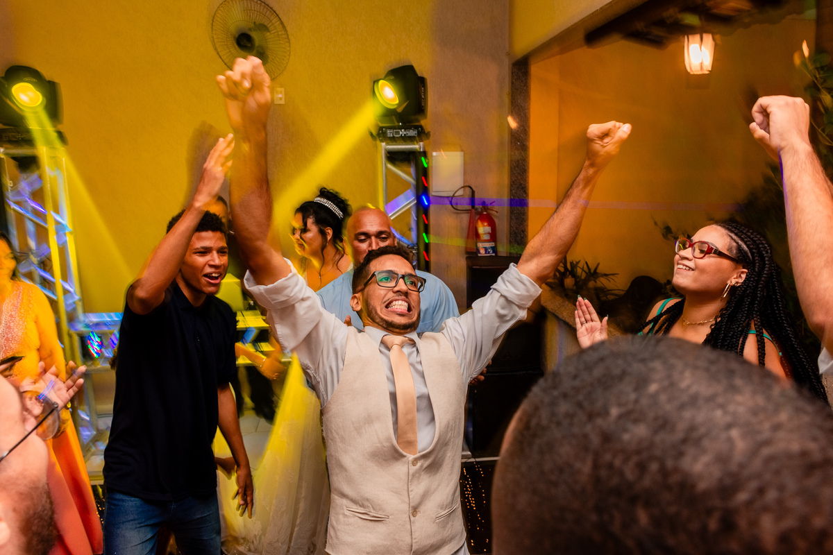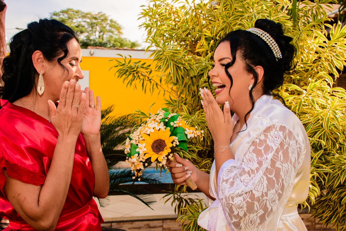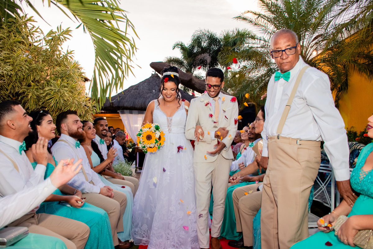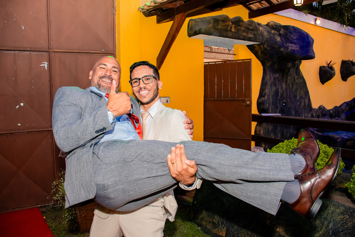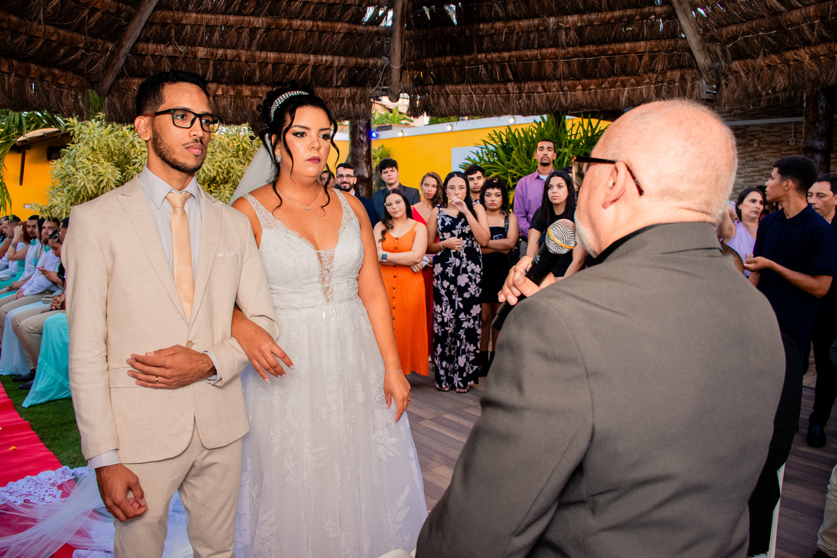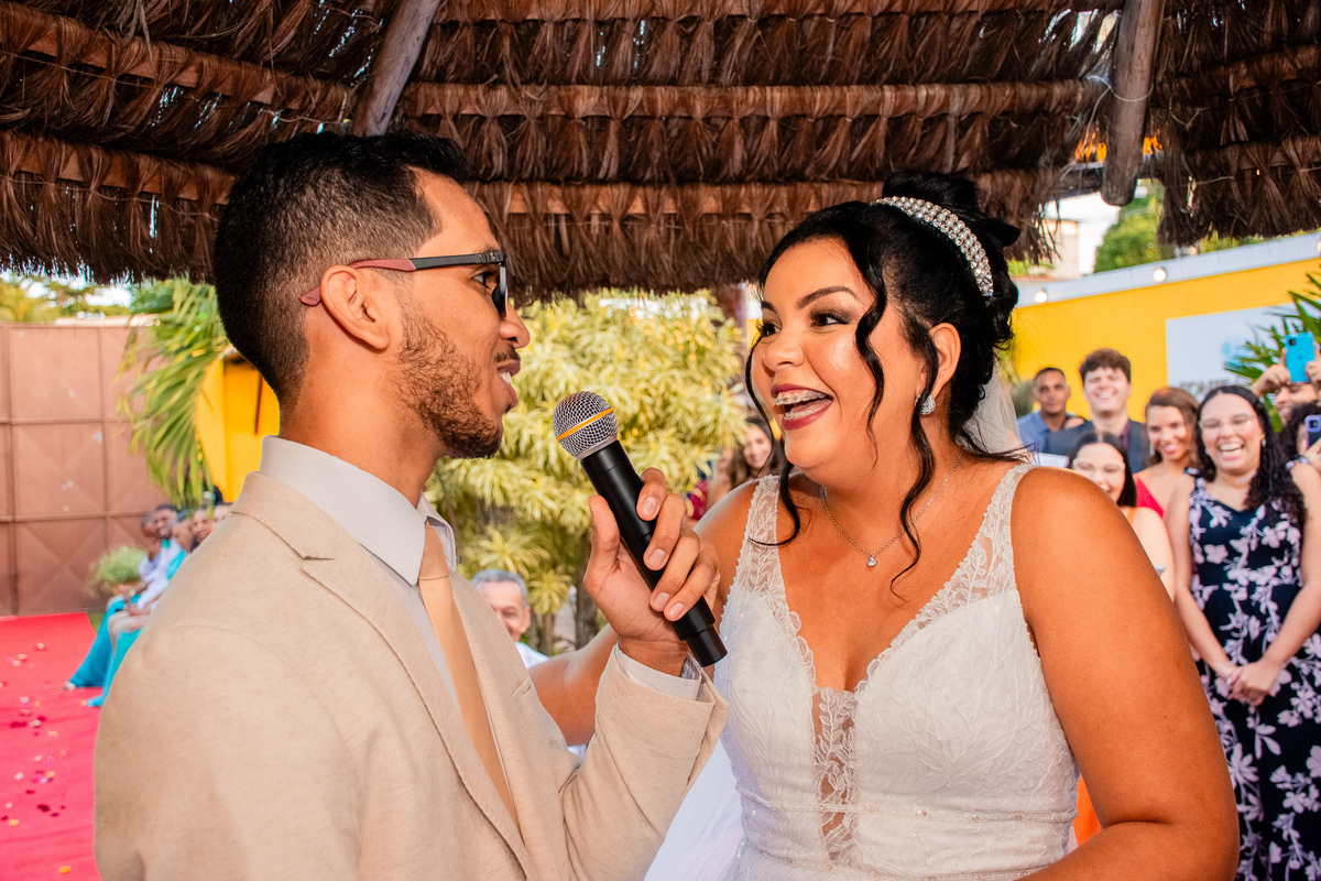 Foram muitas brincadeiras e risos, momentos de emoções dos noivos além da conta, no altar onde tudo é apresentado ao Pai, a gratidão e celebração foi externada por todos naquele ambiente.