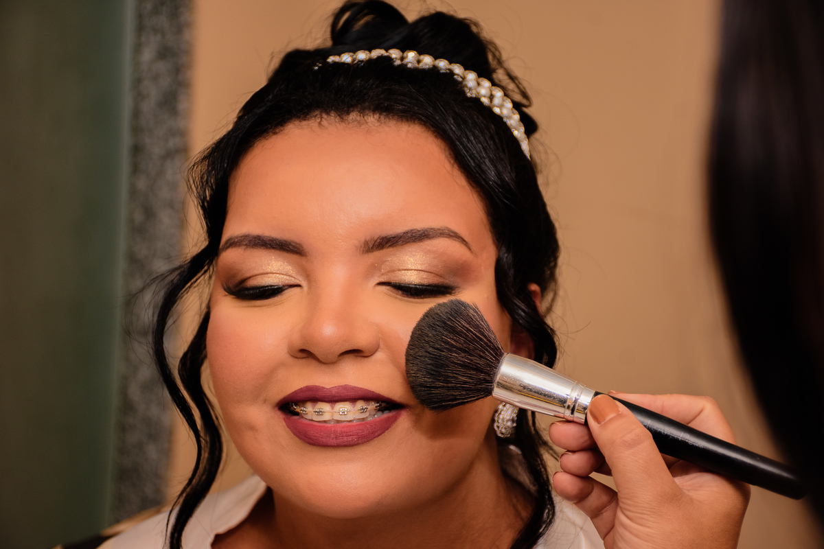 Iniciamos os trabalhos no making of da noiva e logo em seguida registramos a decoração e salão.