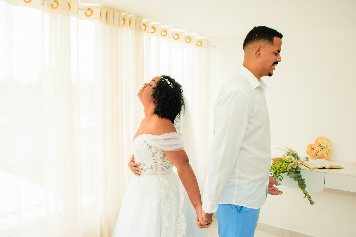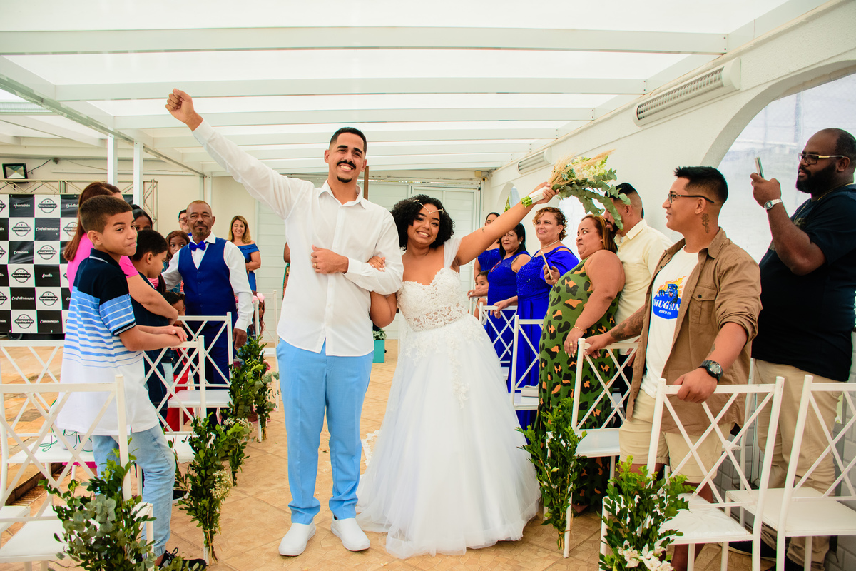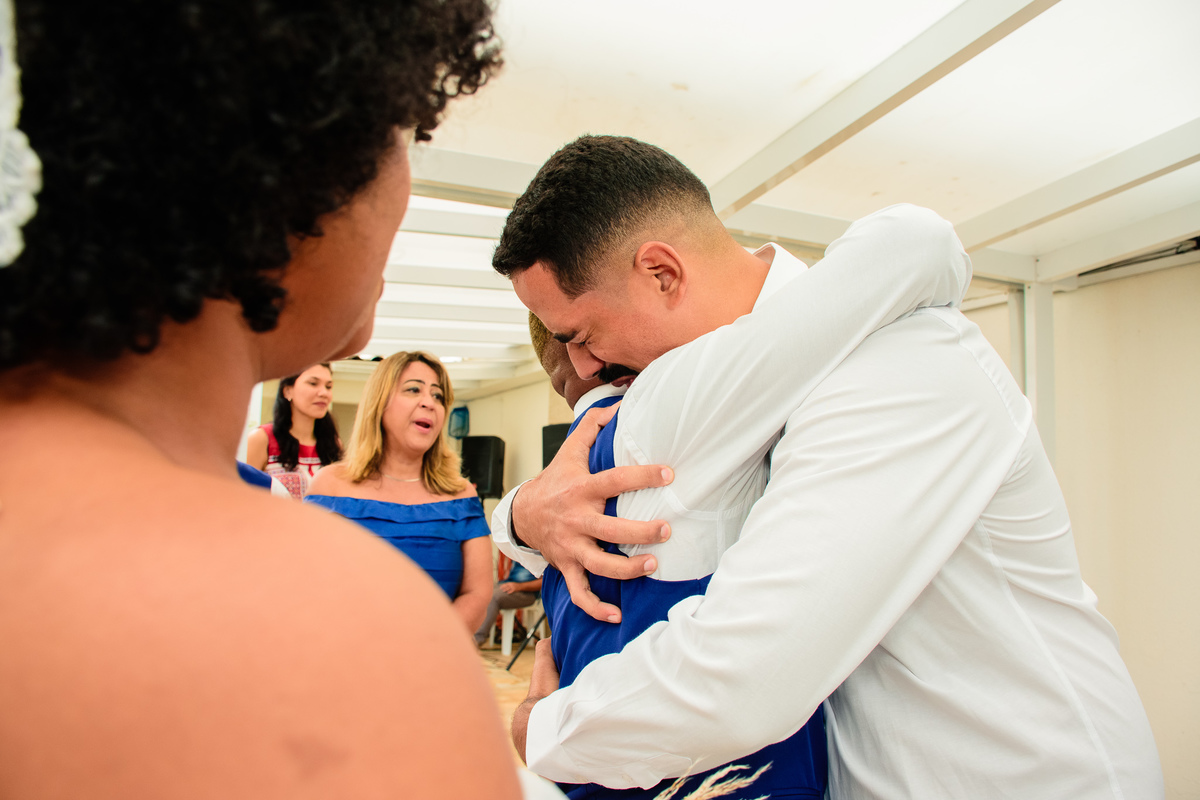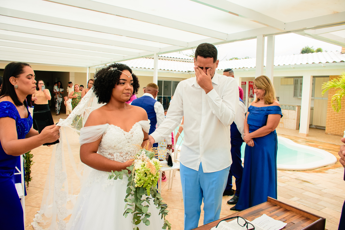 Foram muitas brincadeiras e risos, momentos de emoções dos noivos além da conta, no altar onde tudo é apresentado ao Pai, a gratidão e celebração foi externada por todos naquele ambiente.